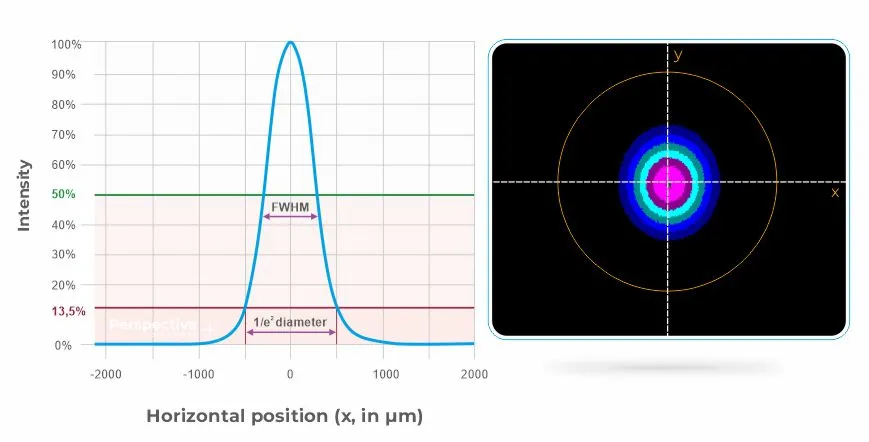 It’s worth noting that different beam width parameters may be more appropriate for different types of lasers or applications. For example, the 1/e² radius is commonly used for laser beams with Gaussian intensity distributions, while the FWHM may be more appropriate for laser beams also with non-Gaussian intensity distributions. Additionally, a well-calibrated and well-designed system is needed to accurately measure these parameters.