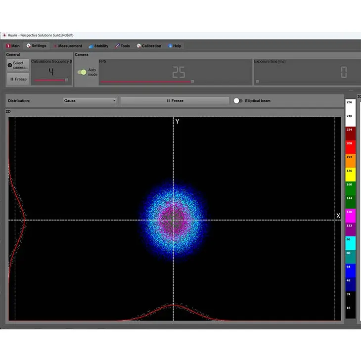 A common method to measure the M² is by using a beam profiler. A beam profiler is a device that captures an image of the beam profile and then analyzes the image to determine the beam’s characteristics. Here you can check examples of Huaris laser beam profilers.
